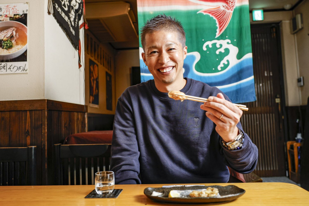 「12~13年前に、チームOBの先輩に連れられて来たのが最初です。ここの社長の久良さんがサッカー経験者というご縁もあって。その時に食べた岩牡蠣がものすごくインパクトあったんですよ。でかくて、旨味があって、忘れられないな~」