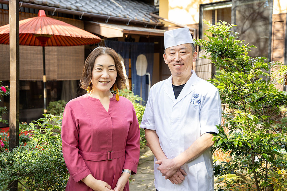 「まず、料理旅館 坪希 TSUBOKIの佇まいを見て感じてください!素敵でしょう。“ここでお食事をするんだ”と思うだけで、胸が高鳴りますよね。食体験は総合力なんです。美味しいのはもちろんですが、それに加えて、“よかったな、また来たいな”と思えることが重要だと私は思っているんです」