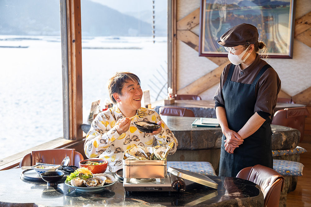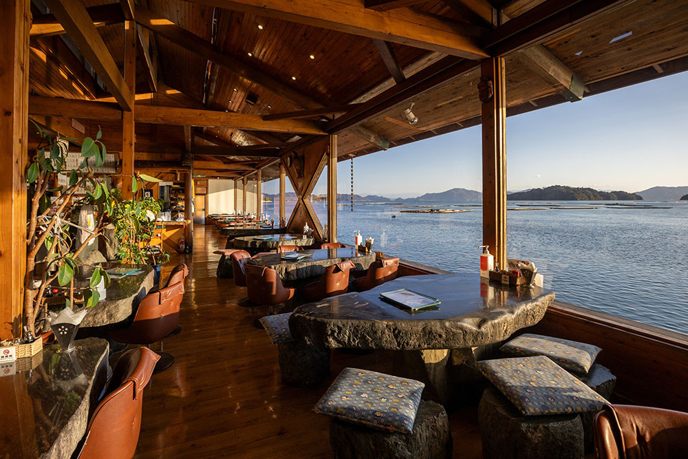 「目の前には三津口湾が広がっていて、牡蠣イカダがたくさんあるでしょう。朝のうちは、日によって目の前で牡蠣の水揚げをしていたりもするんですよ。」